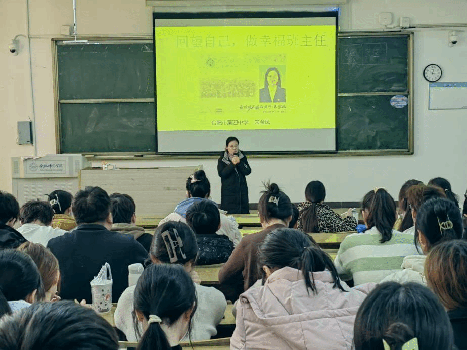 朱金凤校友以《回望自己,做幸福班主任》为题。从“爱满”“天下”“知行合一”三个方面展开讲述自己的班主任工作历程,她强调“班主任要走进学生的内心深处,真正了解学生的需求并给予他们帮助”。听取了朱金凤老师与她的学生的故事,学生们更生动地感受到如何做一个胸怀师爱、播撒师爱的优秀班主任。