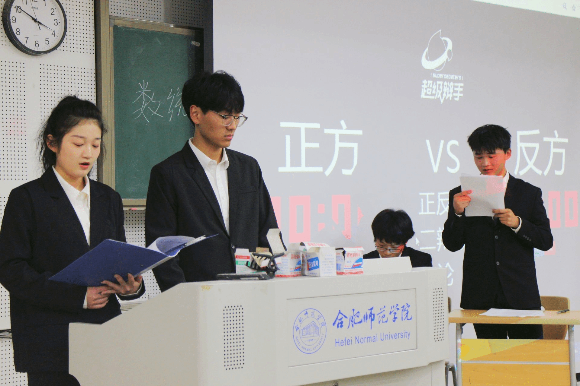 比赛伊始,主持人介绍了各班参赛选手情况及比赛规则,比赛分三组进行。辩题和对阵正反方事先由抽签决定,各辩论组依次围绕“治贫和治愚哪个更重要”“讲好中国故事是该讲伟人故事还是该讲平凡人故事”“智商和情商哪个更重要”展开辩论。辩论中,参赛辩手们旁征博引,你争我辩,比赛精彩纷呈。