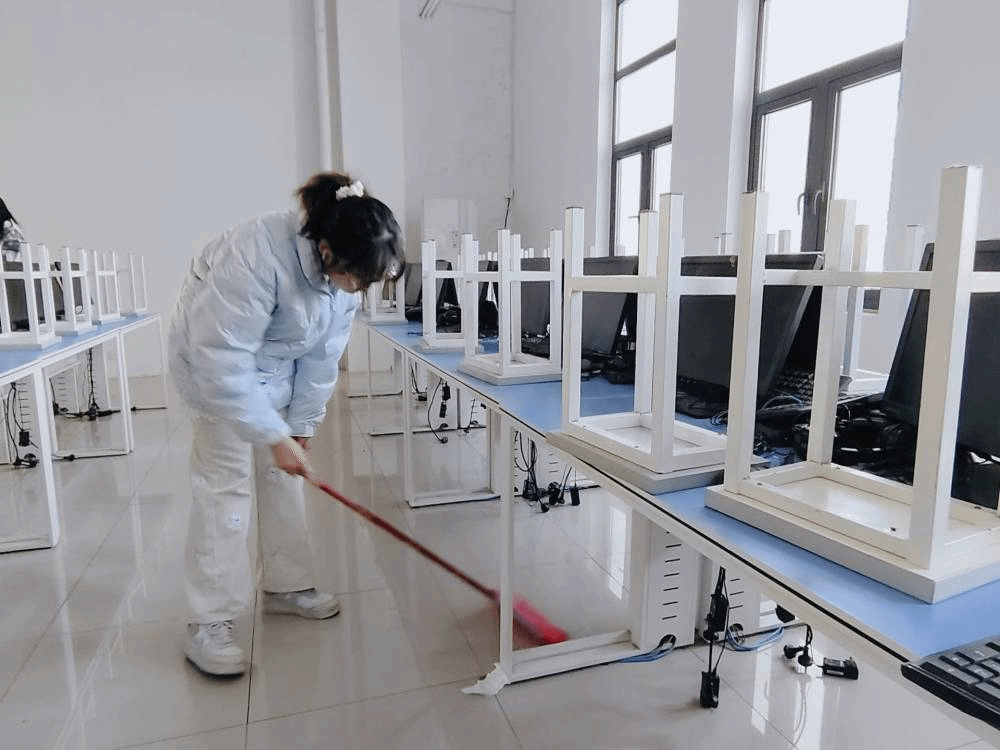 随后,在校园卫生清扫活动中,同学们分工明确,配合默契。大家手持扫帚、铲子,对教室的每一个角落、校园的每一处死角进行彻底清理。同学们不怕脏、不怕累,不放过一片纸屑。春日的暖阳下,汗水很快浸湿了衣衫,可同学们的脸上始终洋溢着欢乐的笑容。因为他们知道,自己的付出能让校园更加美丽,能为师生营造整洁舒适的学习环境。