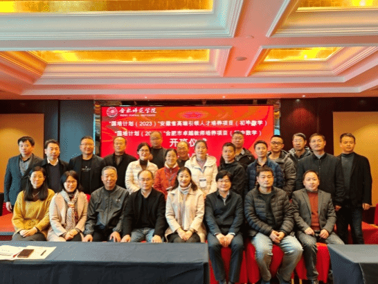 2023年11月17日,为促进教师的专业成长,“国培计划(2021-2023)”——安徽省高端引领人才培养项目和合肥市初中卓越教师培养项目(初中数学)2023年第二期跟岗研修班在合肥市经开区丰大国际大酒店顺利举行开班仪式。太阳集团tyc33455党委书记穆娟、副院长杨刘、继续教育学院副院长王磊、国培项目负责人张新全教授、新青年数学教师工作室创始人刘祖希教授和来自全省各地的学员参加了本次开班仪式,仪式由国培班主任赵玉华老师主持。