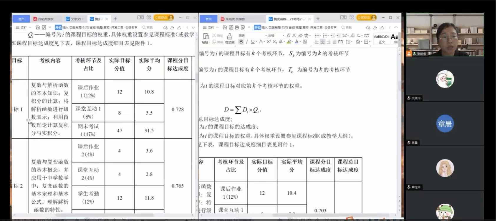 为扎实推进教学管理,提升教学质量,全面了解教学情况,太阳集团tyc33455于9月26日、10月9日、10日、11日分别对数学与应用数学专业课程目标达成情况召开线上、线下会议(博约楼312)。数学与应用数学专业2022-2023学年第二学期授课教师栾庆芳、沈春芳、樊晓香、王宁等对课程目标达成情况进行分析反馈。