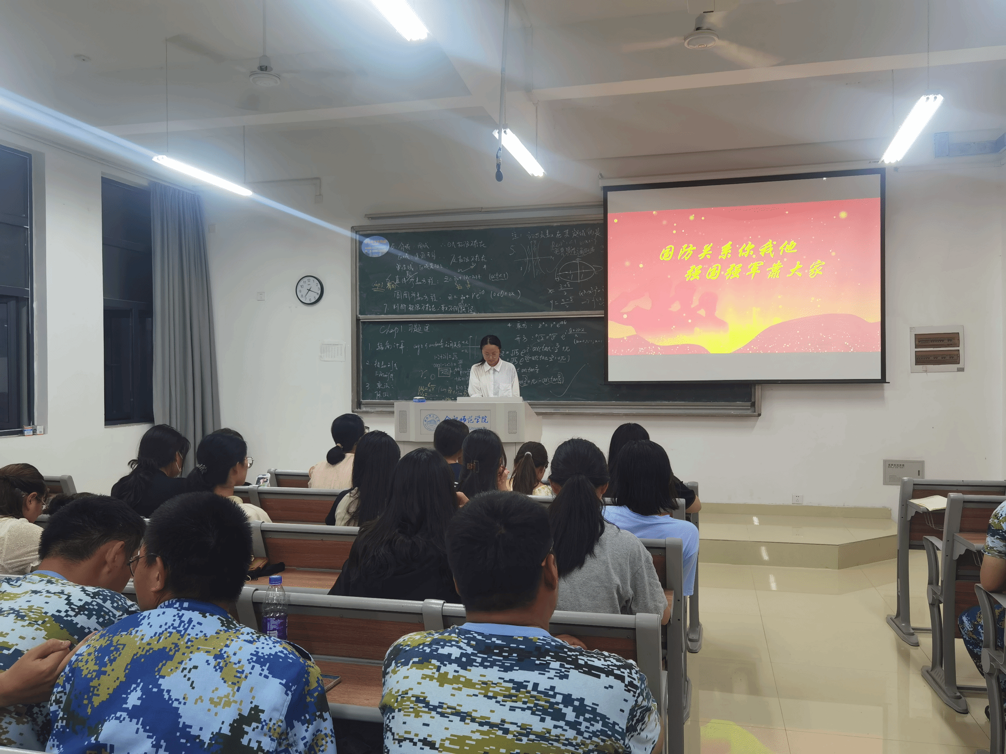 本网讯 为进一步增强学院学生军事国防安全意识,弘扬爱国精神,9月12日至22日,2023级新生军事理论课及爱国主义教育在博学楼A312教室开展。