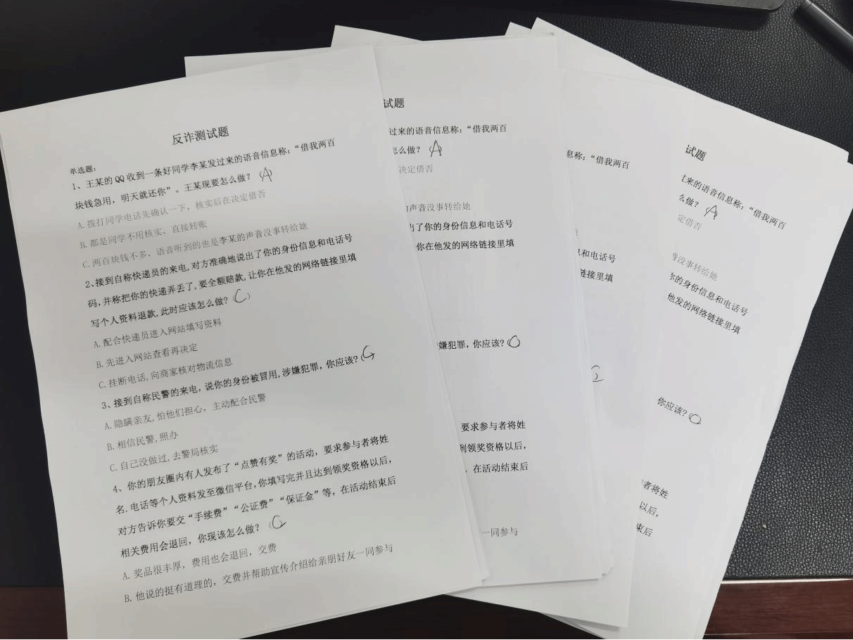 9月12日,刘全亚组织2023级全体新生开展反诈知识测试,并以宿舍为单位签订了反诈倡议书,加强宣传教育力度。