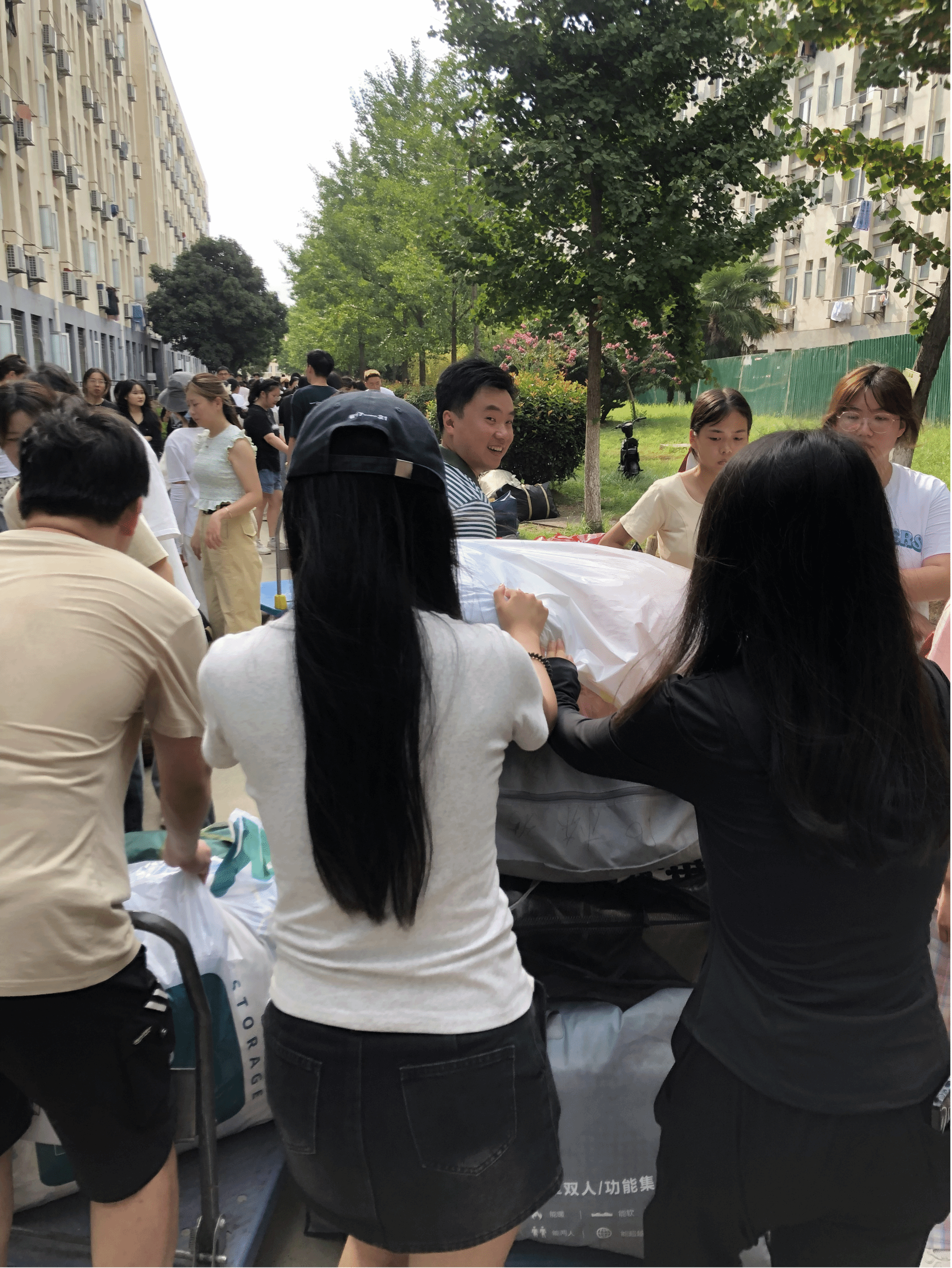 搬迁方案下发后,辅导员召开线上会议进行动员和引导,针对宿舍分配、搬迁时间、搬迁车辆、物品整理打包等具体事宜进行安排,同时提醒同学们返校途中要注意交通安全、提高防盗防骗意识。搬迁当天,副院长周端明、学院领导班子成员、全体辅导员、党员教师分别在锦绣、滨湖两校区进行现场组织、指挥、协调,身先士卒,帮助同学搬运行李。