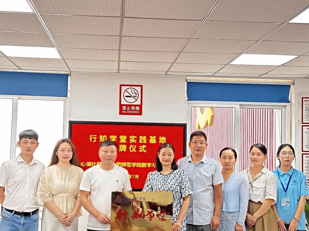 在包河区沁心湖社区行知学堂,穆娟和沁心湖社区党委书记、主任王康为沁心湖“行知学堂”挂牌。
