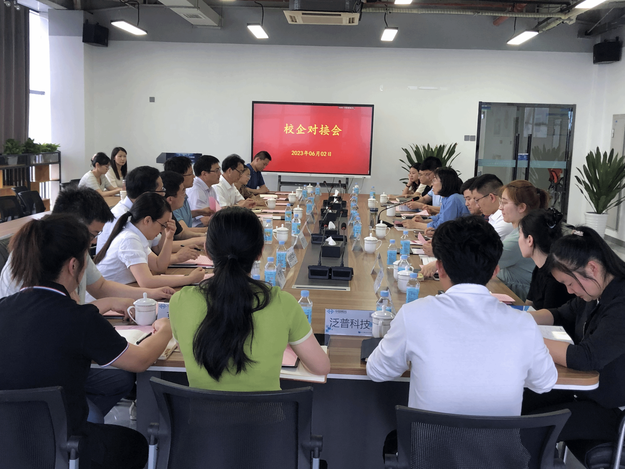 对接会上,学院与部分企业就学校人才培养定位、企业人才需求、毕业生实习、校企合作、毕业生就业等问题进行了广泛的交流,同时与安徽银通物联有限公司、安徽泛谱科技有限公司、合肥统旭智慧科技有限公司、安徽蓝色光标数字传媒有限公司和安徽比达光电科技有限公司在人才培养、毕业生就业等方面达成了初步合作意向,并邀请部分企业来校参观。