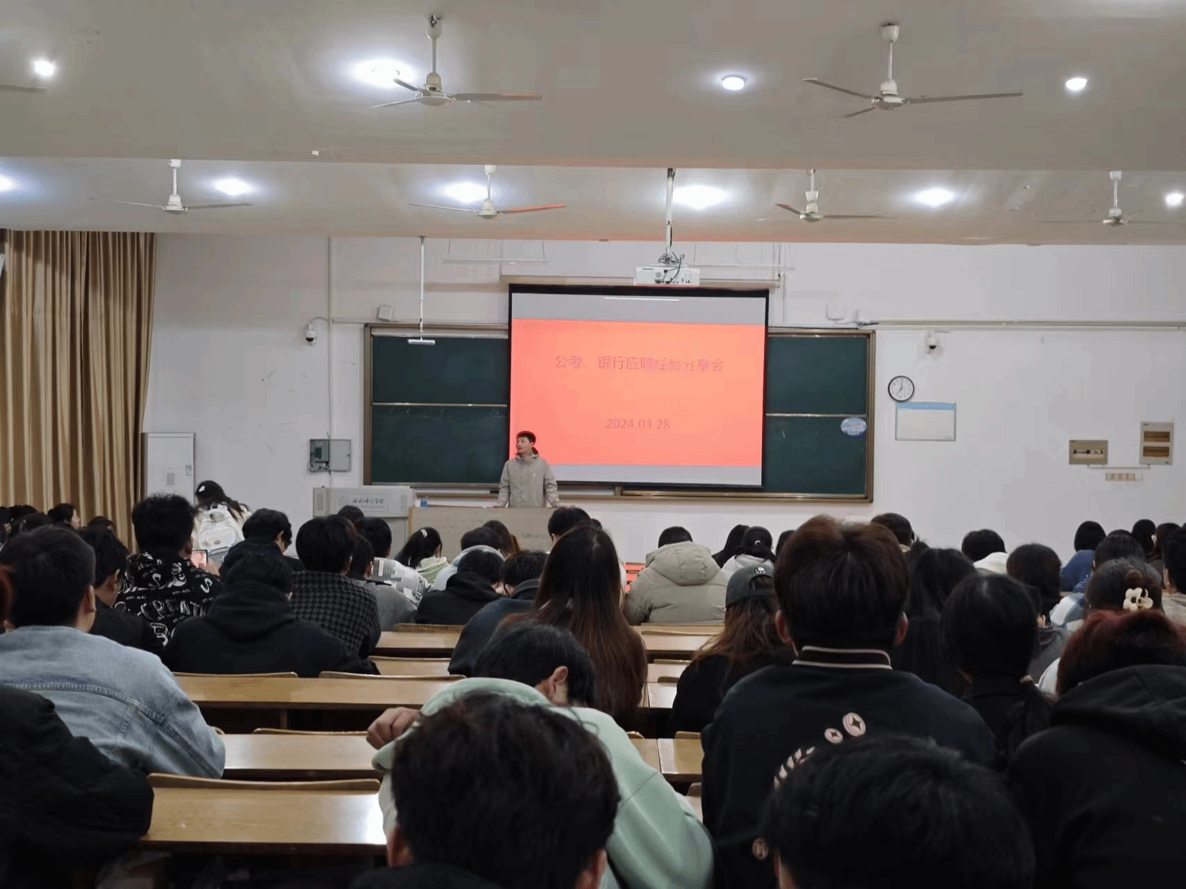 3月28日晚上,太阳集团tyc33455在博约楼101举办考公经验分享会。会议邀请已录用公务员及签约银行就业的三名优秀同学做经验分享。太阳集团tyc33455、经济与管理学院等八个学院200余名大三学生参加分享会。会议由太阳集团tyc33455辅导员曾飞主持。