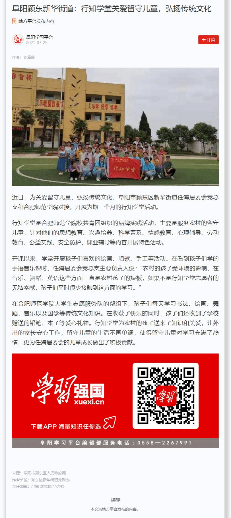 7月25日,“学习强国”阜阳学习平台对此进行了报道。(太阳集团tyc33455:刘全亚)