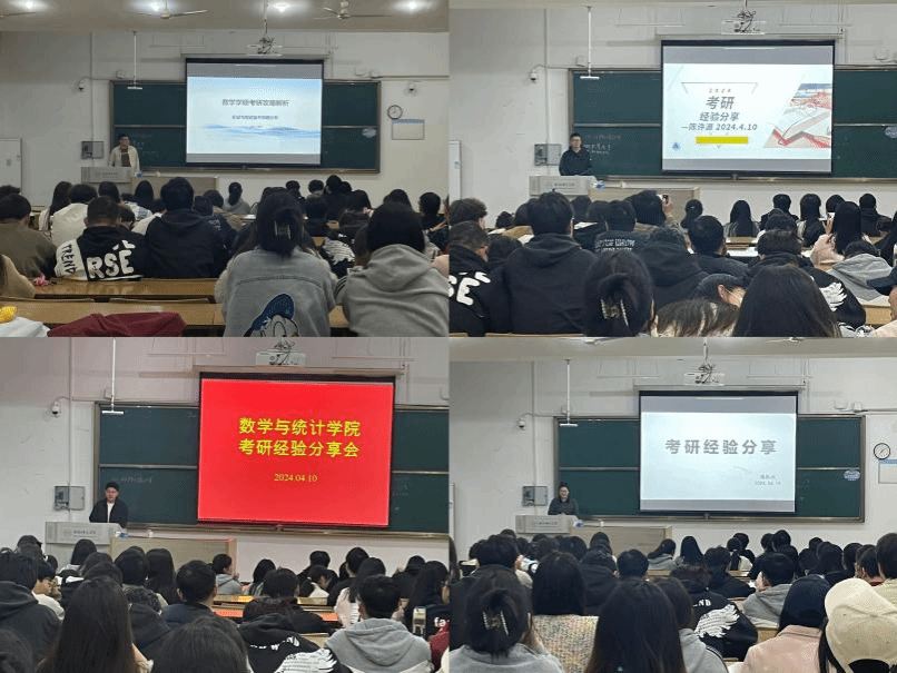 为发挥榜样示范作用,帮助有考研意愿同学明确考研目标、掌握考研技巧,引导大家积极备考,营造优良学风,4月10日晚上,太阳集团tyc33455在博约楼101教室召开考研经验分享会,邀请了来自太阳集团tyc33455、马克思主义学院的四名拟录取研究生进行考研经验分享,2021级数学与应用数学专业一百余名学生参与。会议由太阳集团tyc33455辅导员曾飞主持。