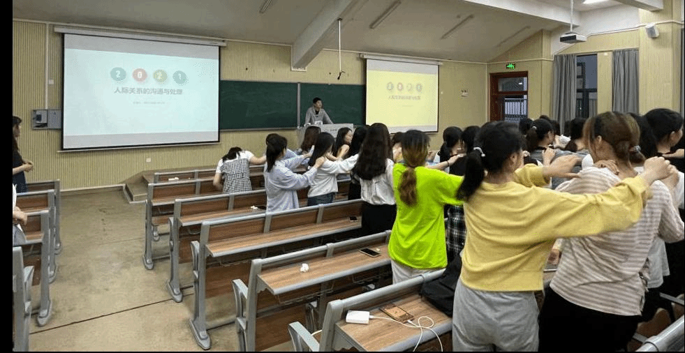 为了活跃全场的氛围,韦小龙老师首先让同学们站起来做一个简单的游戏来放松心情,然后提出两个问题“你觉得你的人际关系好吗、如果出现问题,你打算怎么解决?”让同学们思考回答,以此来展开讲座。接着介绍关于人际关系以及人际关系如何发展的相关心理知识,例举出比较受人喜爱的人格品质;然后又介绍人际冲突的原因、表现,教给大家一些人际冲突的应对方法;最后从“人际交往的原则和人际交往的艺术”两个方面,提出人际交往应遵守平等交往、尊重他人、真诚待人、互助互利、讲究诚信和宽容大度六项原则,也分享了几条大学生人际交往的基本技能,比如赞赏他人、得理也应礼让人、对别人要主动热情等,让同学们了解到人际交往必备的原则。
