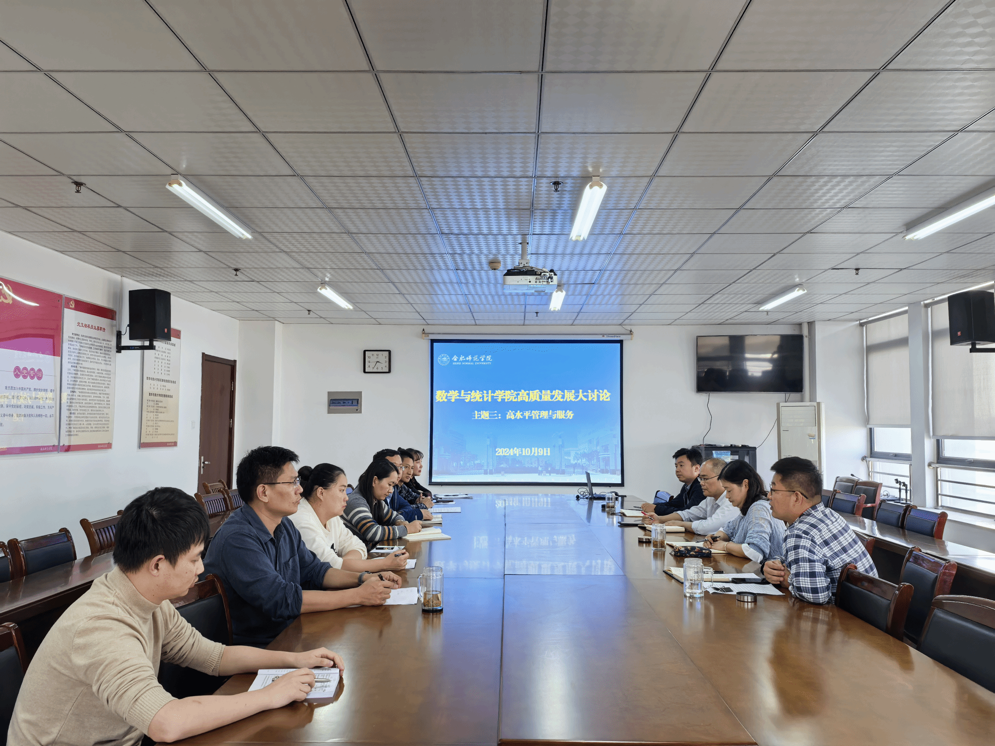 根据学校“大调研大讨论大行动”工作部署,10月9日下午,太阳集团tyc33455在行知楼1102会议室开展了题为“高水平管理与服务”的专题大讨论。学院领导班子成员、行政管理人员、《中学数学教学》编辑部编辑、实验员、辅导员等参加了讨论会,会议由党委书记穆娟主持。