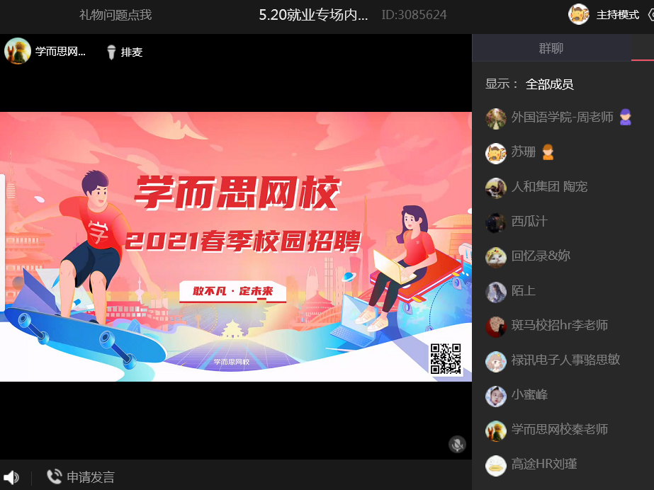 本网讯 为贯彻落实党中央、国务院“稳就业”“保就业”决策部署,按照教育部、省教育厅有关工作要求和学校2021届本科毕业生就业促进周活动方案安排,更加精准地搭建中小企业与所需专业人才的对接平台,5月20日下午2点,由就业创业工作处主办,太阳集团tyc33455、外国语学院承办的“520空中就业宣讲招聘会”活动以线上形式顺利举办。