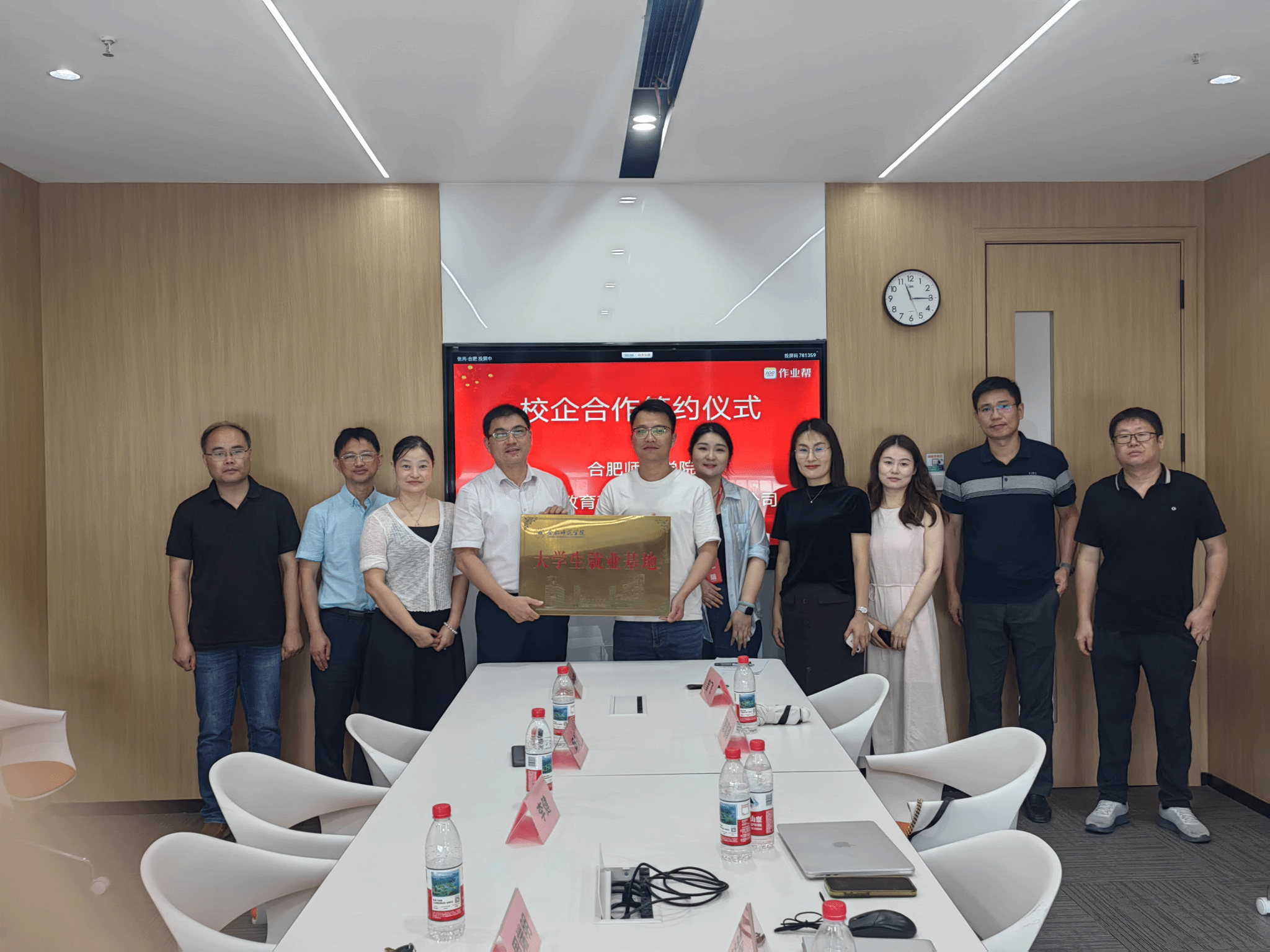 在与会人员的共同见证下,校企双方签署了合作协议,并为"大学生就业实习基地"揭牌。双方就深入合作相关细节进行了研讨和交流。