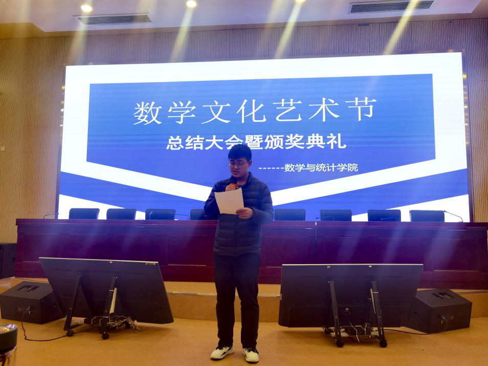 大会第一项议程,2020级获奖同学代表朱振兴发表参与此次数学文化节活动的感言,朱振兴表示通过参与此次活动,感受到数学的魅力,今后会加强自身专业的学习,提高专业技能。第二项议程,由副院长杨刘进行总结发言,杨刘对学生们所取得成绩表示一定的肯定,鼓励学生们要勤奋学习,提高专业学习能力。第三项议程,大会嘉宾为获奖同学颁发获奖证书。