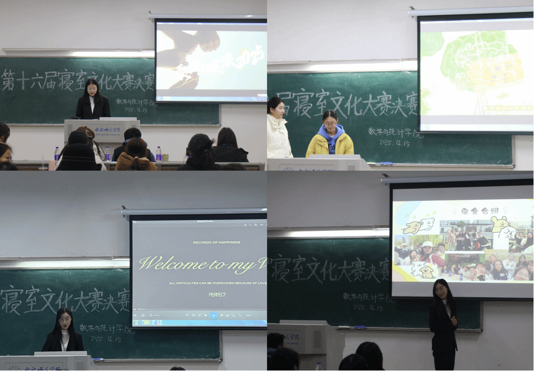 大赛特邀新生辅导员齐璇、付恩鹏担任评委,各参赛寝室代表齐聚一堂,通过“微电影展播+PPT汇报”相结合的形式,立体呈现寝室文化魅力。五分钟的微电影环节中,学子们用镜头定格挑灯夜读的专注、课余相伴的欢畅、互帮互助的温情与节日同庆的暖意,勾勒出青春集体的鲜活画卷。PPT汇报环节,各寝室代表从容登台,围绕设计理念、文化特色与学风建设展开阐释,将数学思维与青春创意融入文化表达,充分彰显学院学子勤学笃行、乐观向上的精神风貌。