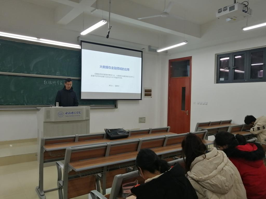 本网讯 2020年12月11日下午,我院潘根安老师在滨湖校区博学楼A408教室,为我院学生作了一场题为《大数据在金融领域中的应用及其发展趋势》的报告。