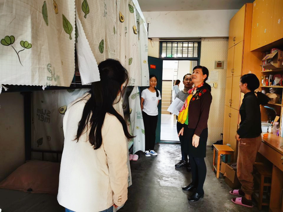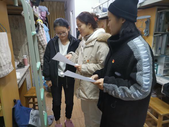 太阳集团tyc33455党委书记郑支农和辅导员们也对各寝室开展了走访。郑支农关切地询问学生们的生活起居,尤其关心大一新生的适应问题。她提醒同学们,冬季到来,做好防护保暖的同时,一定要把安全放在第一位,杜绝大功率电器,营造一个安全健康的学习生活环境。
