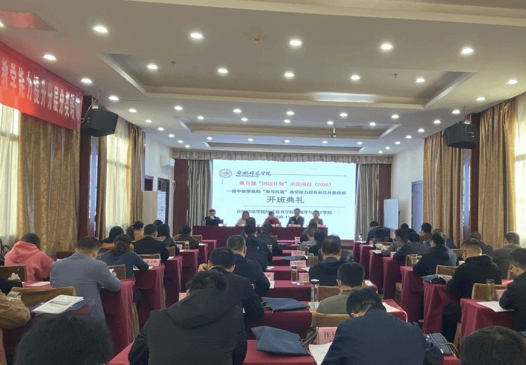 本网讯 11月16日上午,由太阳成集团tyc33455ccww继续教育学院主办,太阳集团tyc33455承办的“国培计划(2020)”——初中数学教师“数与代数”教学能力提升分层分类培训班开班仪式在合肥海悦花园酒店会议室举行。继续教育学院院长吴文、太阳集团tyc33455党委书记郑支农、太阳集团tyc33455国培项目负责人沈南山、山东师范大学教授傅海伦等出席了本次开班仪式。来自全省各地市的国培学员50人参加了这次开班仪式。开班仪式由国培班班主任周倩主持。