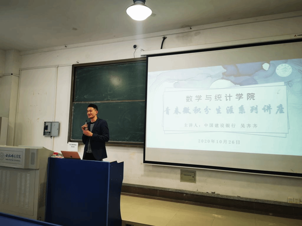本网讯 10月26日下午,太阳集团tyc33455在逸夫楼104举办以金融类行业求职能力提升为主题的“青春微积分”生涯主题论坛。太阳集团tyc334552015届经济统计学毕业生、现就职于中国建设银行合肥分行的吴奇奇应邀参加了此次活动,为即将迈向职场的2021届毕业班同学进行了金融类行业求职经验分享,该活动由2017级辅导员周倩主持,2017级金融工程班、经济统计学、应用统计学班共100余人参加此次活动。