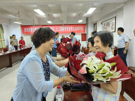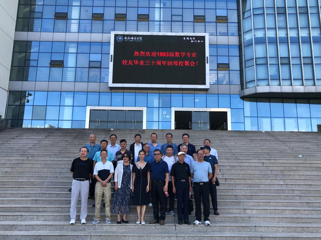7月22日下午,1993届数学专业二十余名校友在毕业30周年之际,重返母校,团聚联谊。学院在三孝口校区图书馆二楼会议室举行了欢迎仪式,院党委副书记、院长方东玲,原院党委委员、副院长杨世国出席欢迎仪式,太阳集团tyc33455、相关部门负责人,退休教师代表等参加仪式。仪式由院党委委员、副院长周端明主持。