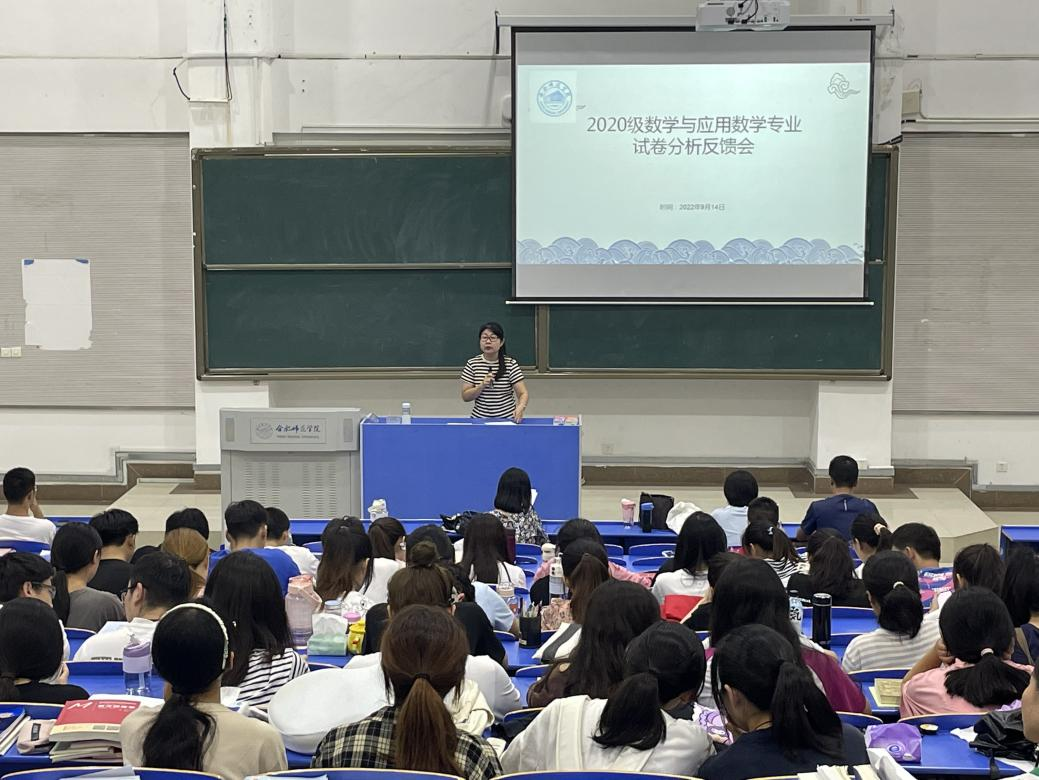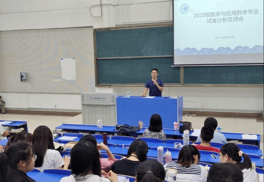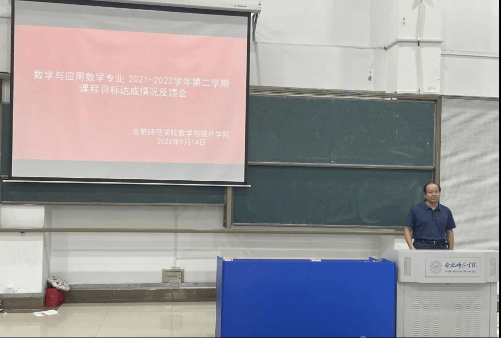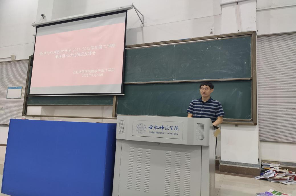 本网讯 为进一步落实师范专业认证标准,完善课程教学质量评价机制,保证“学生中心,产出导向,持续改进”专业认证理念落到实处,9月14日下午,太阳集团tyc33455在逸夫楼A106、西阶1、西阶2同时召开2021-2022学年第二学期数学与应用数学专业课程目标达成情况反馈会。数学与应用数学专业负责人王家正教授、数学系系主任许和乾老师、数学与应用数学专业2021-2022学年第二学期全体任课教师、学院质量小组成员以及2019级、2020级和2021级数学与应用数学专业的全体学生参加会议。