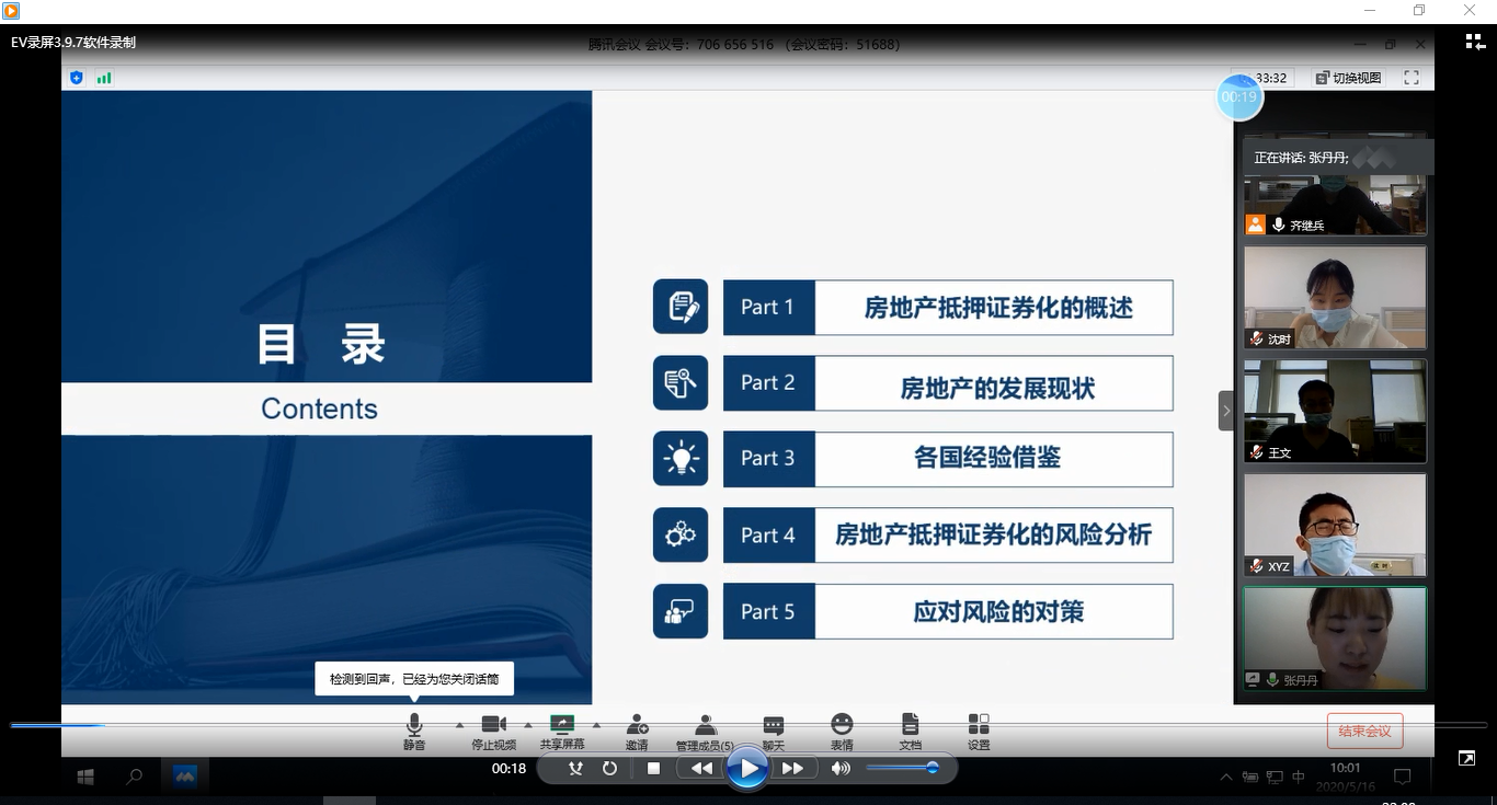 本网讯 根据学校《太阳成集团tyc33455ccww2020届普通本科毕业设计(论文)实施方案》、 《关于疫情防控期加强2020届本科毕业设计(论文)线上指导的通知》,以及学院《太阳集团tyc334552020届毕业论文答辩工作方案》的要求,5月16日上午,金融系老师完成2016级金融工程班的第一次毕业论文在线答辩,两个答辩小组分别在行知楼1104,1105办公室进行。