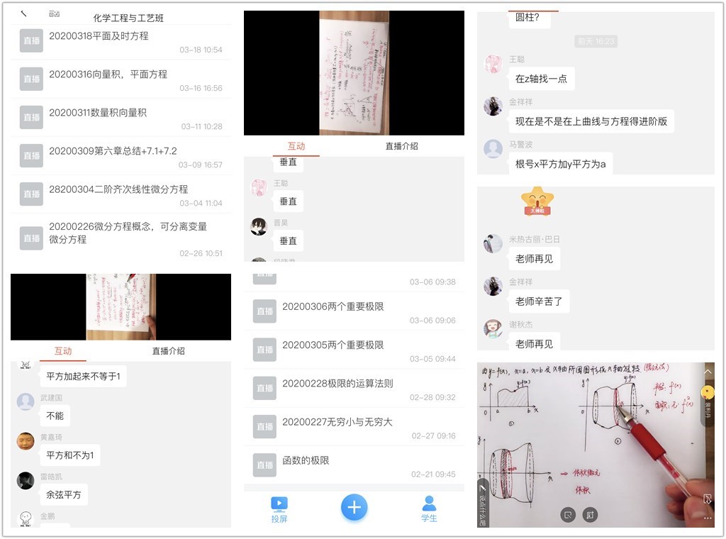 开学初期为避免教学平台卡顿等问题,采用观看慕课视频+直播讲解重难点+测验+直播答疑的上课模式。随后在学习通平台扩容之后,采纳多数学生意见,直播无压力的情况下全程直播上课。