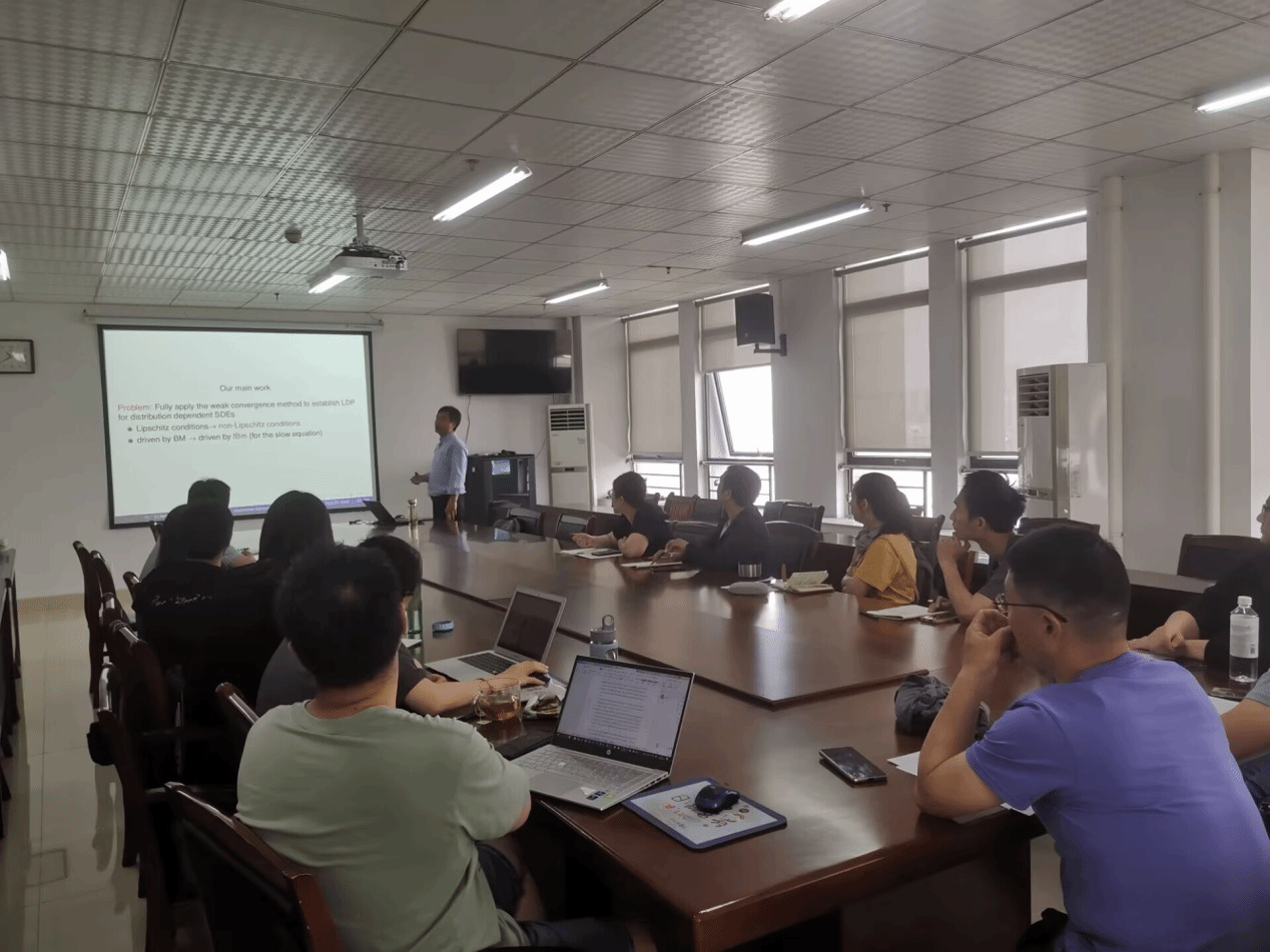 报告会结束后,申广君教授与学院教师就分数阶布朗运动驱动的随机微分方程问题进行了深入细致地交流与讨论,并就博士生招生推荐、数学和统计学科建设、有组织科研等问题与参会教师进行了交流。此次报告会增加了师生对随机微分方程领域的了解,拓展了知识面,使大家受益匪浅。(太阳集团tyc33455)