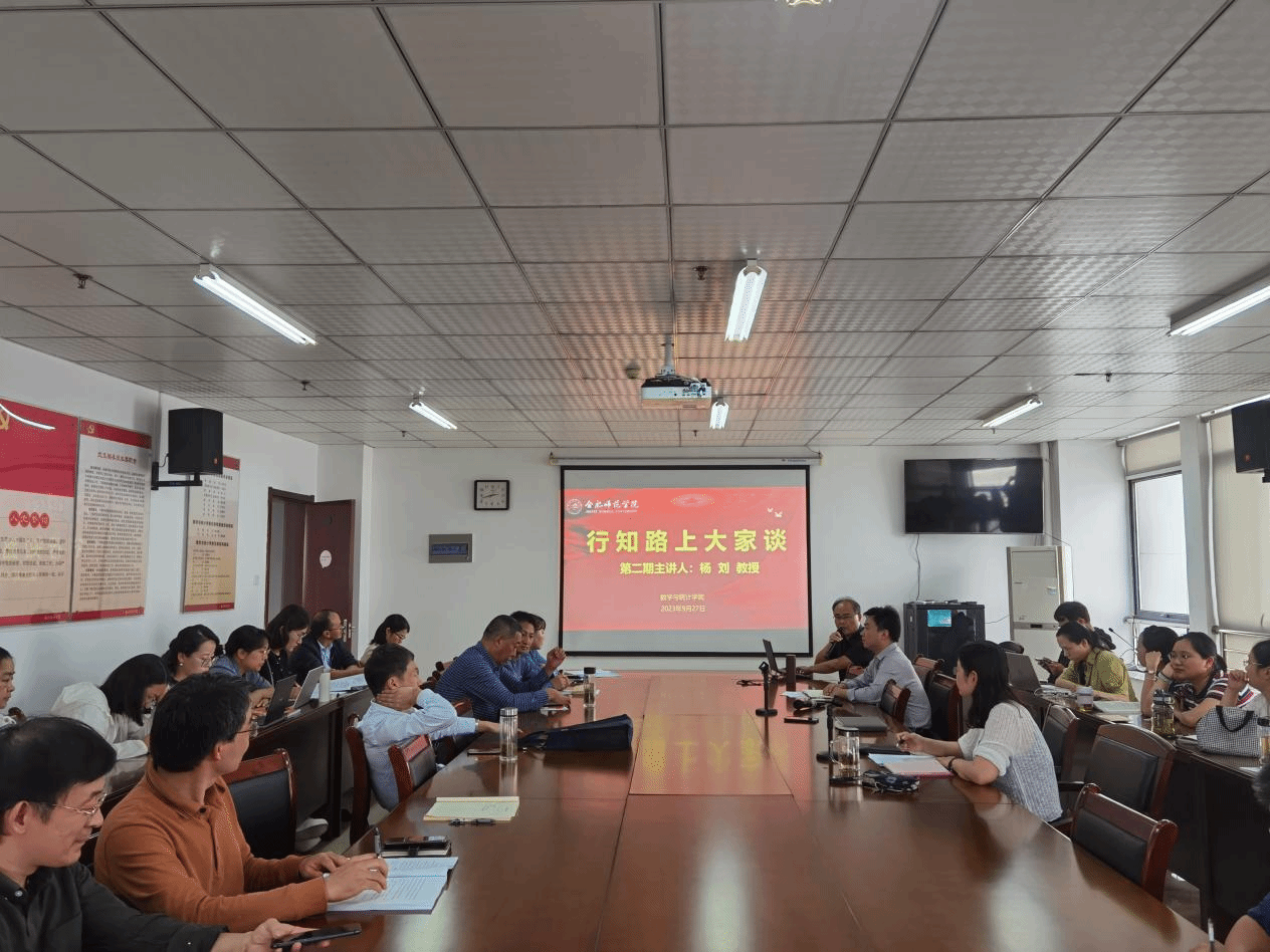 9月27日下午,太阳集团tyc33455在行知楼1102会议室开展了“行知路上大家谈”第二期活动,邀请杨刘教授分享教书育人体会。活动由党委书记穆娟主持,学院全体教职工参加。