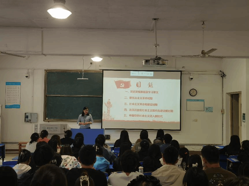 开班仪式后,穆娟以《党的光辉历程》为题作了首次授课,她从党史发展脉络及学习意义切入,回顾了中国共产党创立的历史背景、党的成长所经历的重大历史变革等内容,从新民主主义革命时期、社会主义革命和建设时期、改革开放和社会主义现代化建设新时期以及中国特色社会主义进入新时代四个历史阶段,系统详尽、深入浅出地讲述了党的光辉历程,教育引导青年大学生要学习好党史,继承传承好党的成功经验和优良传统,弘扬伟大建党精神,做有理想、敢担当、能吃苦、肯奋斗的新时代好青年。(太阳集团tyc33455:王志)