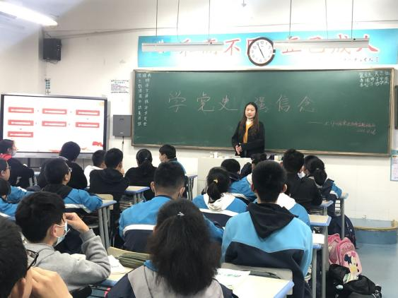 本网讯 为深入推进党史学习教育,把学习成效转化为服务动力,开展好“我为群众办实事”实践活动。4月27日,太阳集团tyc33455学生第一党支部葛梦雪等4名学生党员走进四十六中南校区,在七年级7班开展了以“学习百年党史 奋发青春力量”为主题的党史宣讲活动,为中学生们带来了一场生动的党课。