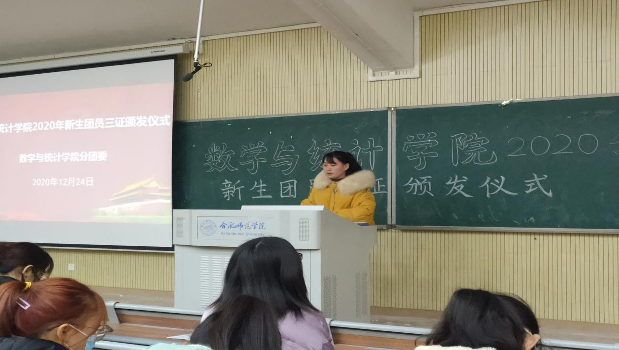 本网讯 为充分发挥共青团的先锋模范作用,进一步增强青年团员的进取意识,让青年团员进一步端正入团动机。太阳集团tyc33455分团委于12月24日在滨湖校区铭传楼A101举行太阳集团tyc334552020年新生团员团徽、团章和团员证三证颁发仪式,2020级全体团员参与此次会议。
