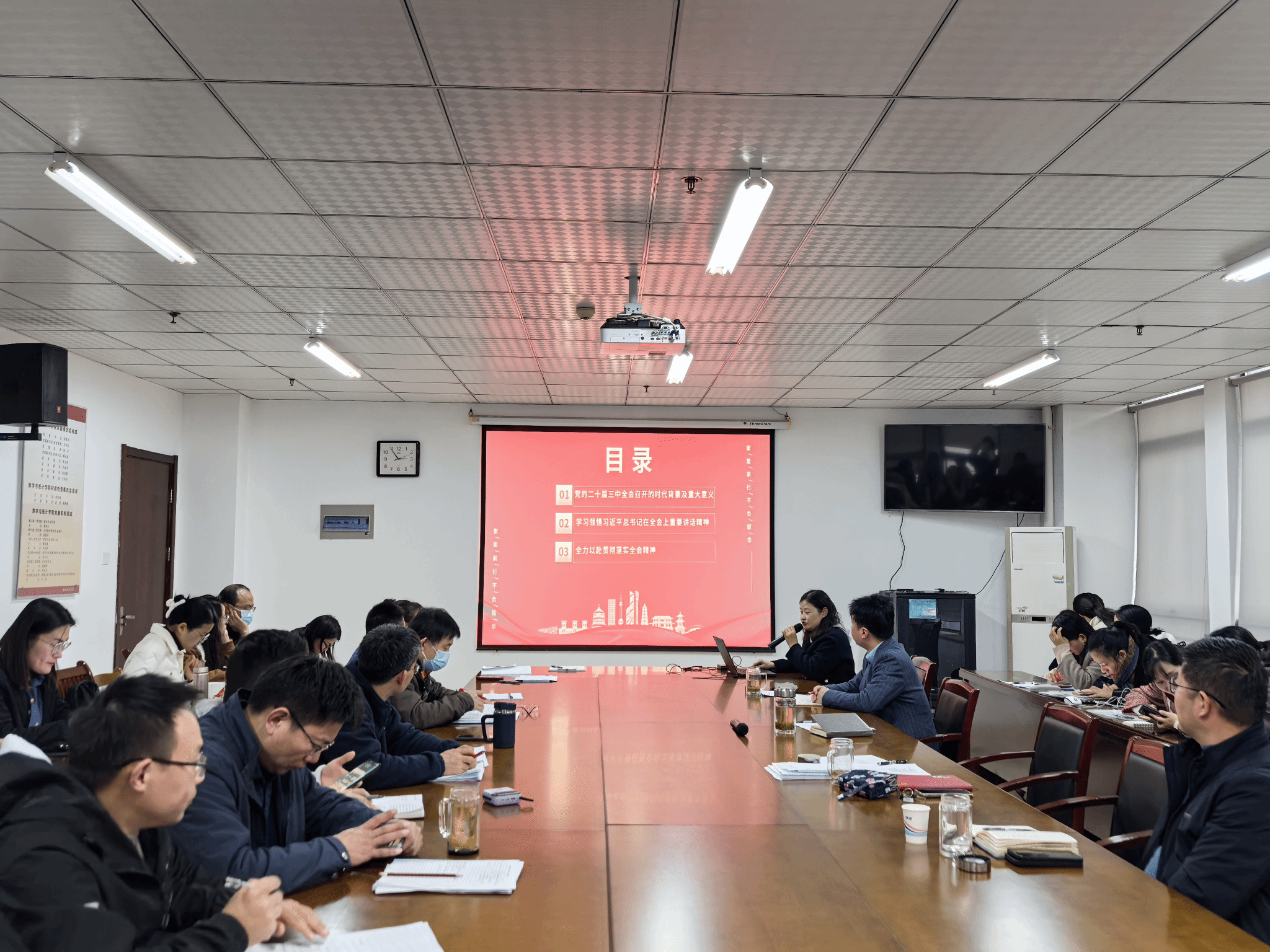 会上,穆娟深入浅出,围绕“党的二十届三中全会召开的时代背景及重大意义”“学习领悟习近平总书记在全会上重要讲话精神”“全力以赴贯彻落实全会精神”三个章节进行宣讲。穆娟指出,全体教职工要提高政治站位,把学习贯彻党的二十届三中全会精神与习近平总书记三次考察安徽的重要讲话精神、习近平总书记在省部级主要领导干部学习贯彻党的二十届三中全会精神专题研讨班开班式上的重要讲话精神、习近平总书记在全国教育大会上的讲话精神相结合,做到带着使命学、带着责任学、带着问题学,深刻领会党的二十届三中全会精神的核心要义。要切实将全会精神转化为推动学院党建和事业高质量发展的具体实践,锚定“一体推进申硕更大”目标,结合“全面深化应用型办学改革 奋力谱写高质量发展新篇章”大调研大讨论大行动,围绕学位点申报、人才引进、成果培育等重点任务,不断深化内涵建设,持之以恒抓好学院高质量发展。