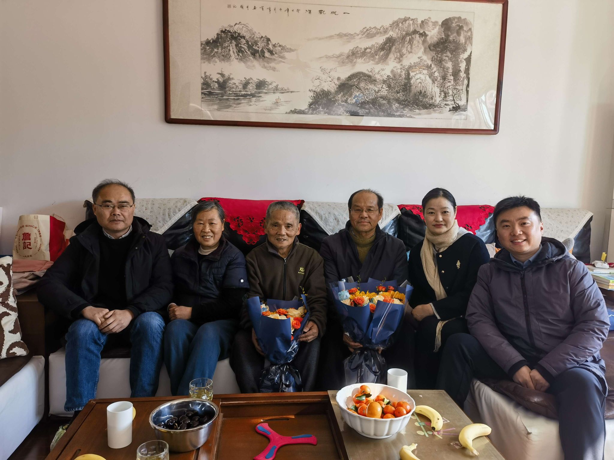 新春将至,岁寒情暖。元月17日上午,在春节即将来临之际,太阳集团tyc33455党委书记穆娟、党委副书记、院长杨刘、副院长黄浩等一行走访慰问了学院离退休老领导老党员郭世平和王家正两位老师,为他们送去组织的关怀和温暖,并致以节日的问候和美好的祝福。