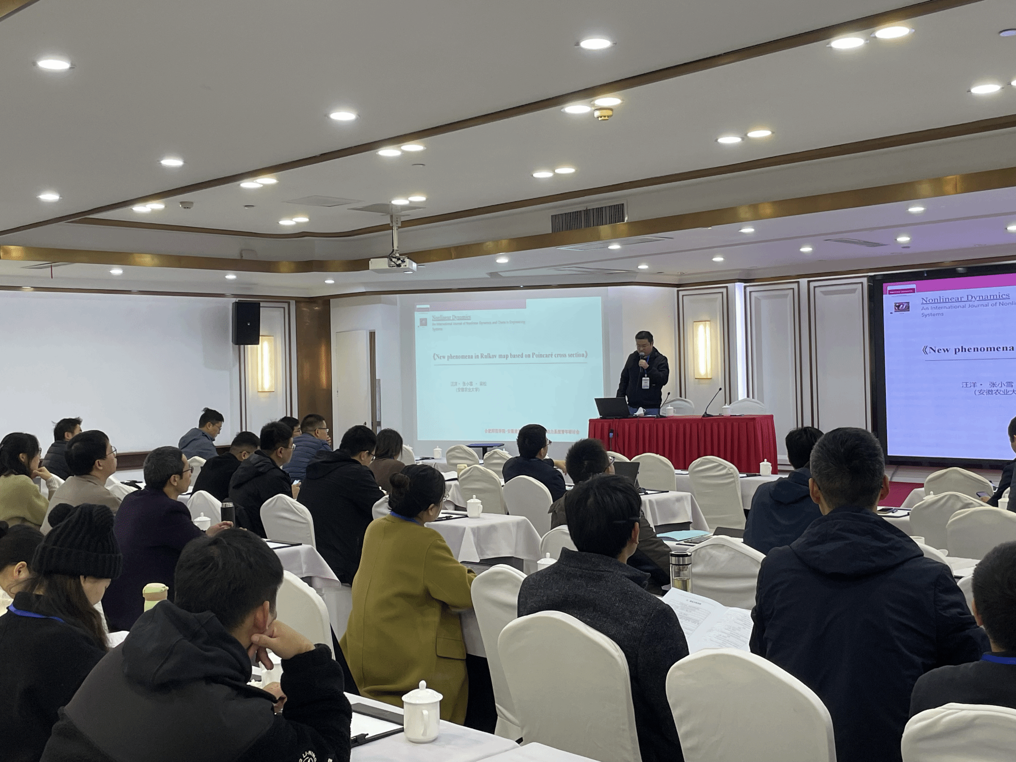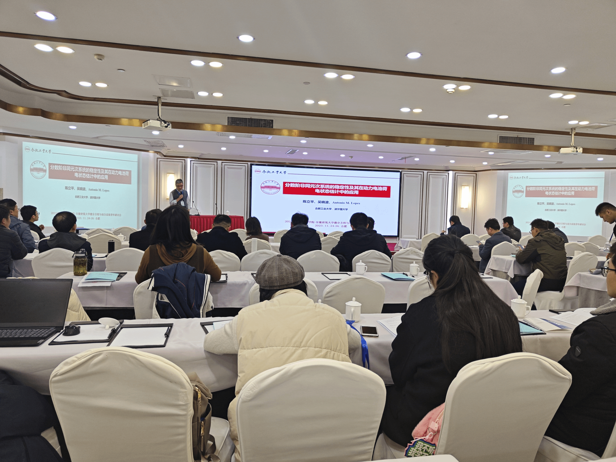 11月24日-11月26日,由太阳集团tyc33455、安徽建筑大学理学院举办的2023年太阳成集团tyc33455ccww—安徽建筑大学微分方程与动力系统青年研讨会在合肥召开。来自中国科学技术大学、湘潭大学、中国地质大学(北京)、北京信息科技大学、曲阜师范大学、上海师范大学、合肥工业大学、安徽大学、扬州大学、南京邮电大学与安徽师范大学等20多所高校近百名专家学者参加了此次会议。